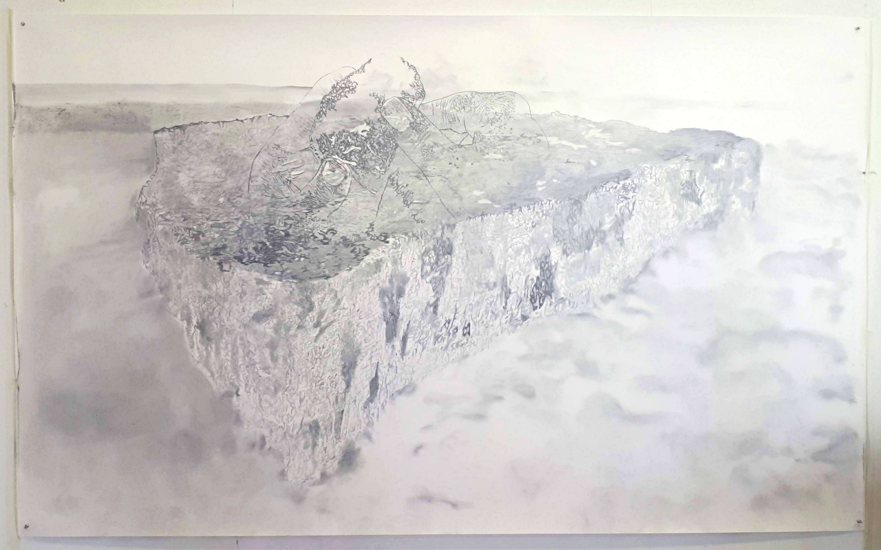The title of the exhibition at NN Contemporary, ‘Unfolding the Vaporous Mind’, refers to blurry thoughts that eventually always find their way. This metaphor is visualised in the depicted landscapes formed by natural and human erosion, materialised through pencil on paper. Deleuze and Guattari put Gam Bodenhausen’s work in the context of rhizomatic structures. They clarify how she directs the attention towards the multiplicity of lines, and how these lines together form an assemblage open to interpretation. Ultimately, she shows inner and endless relationality at its finest.