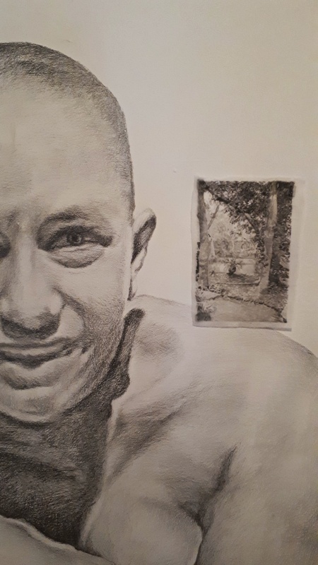 Lise Sore’s drawings are a snapshot of an elongated emotional moment. Her self portraits expressively depict her own feelings. The transparency of the cheesecloth she draws on is an almost poetic nod to the transparency of herself in her work. By exposing her deepest emotions and opening herself up completely she creates a touching vulnerability. This vulnerability invites the viewer to tap into their own feelings as well.